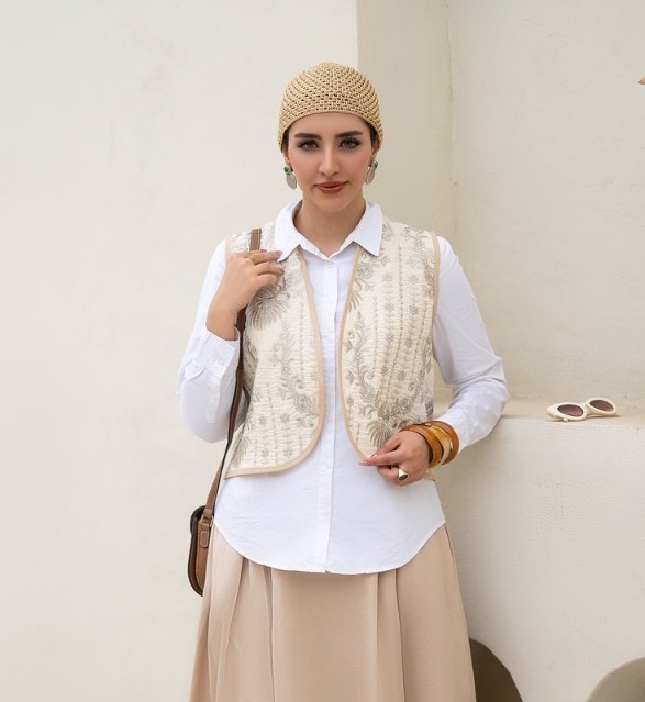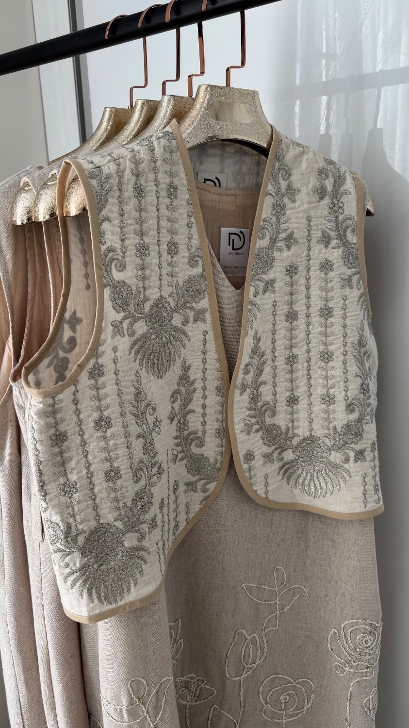 • جنس لینن سوزندوزی هندی - تمام وست از این پارچه دوخته شده است