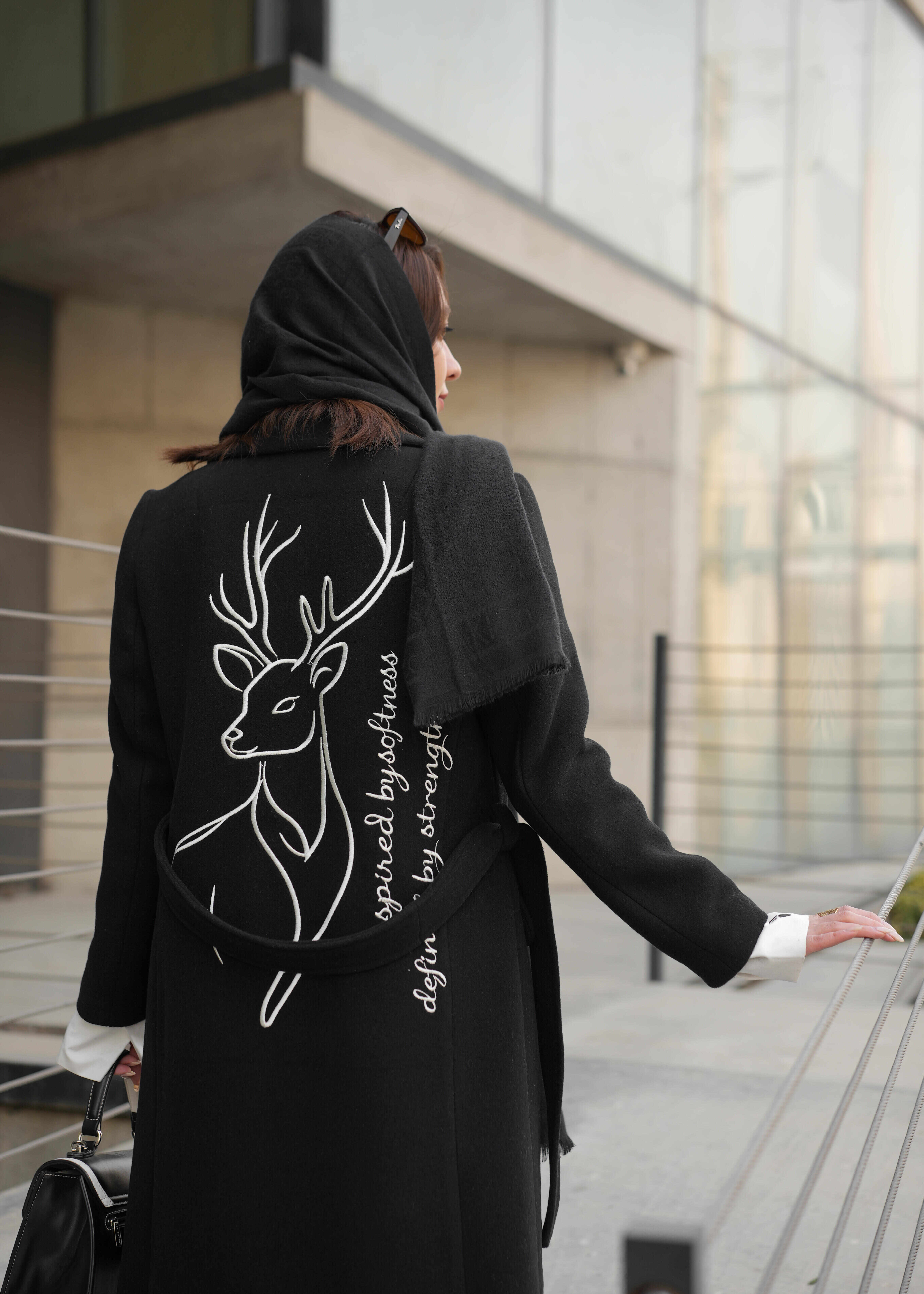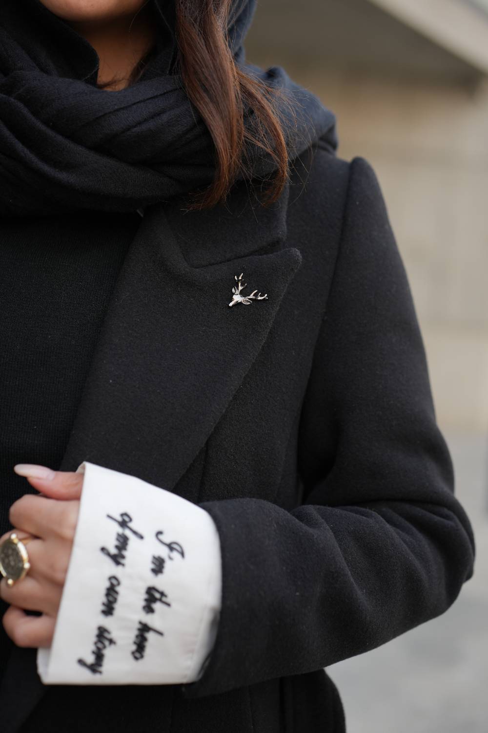 • اتصال سنچاق مدل گوزن فلزی در قسمت یقه ی کت و درجیب ها