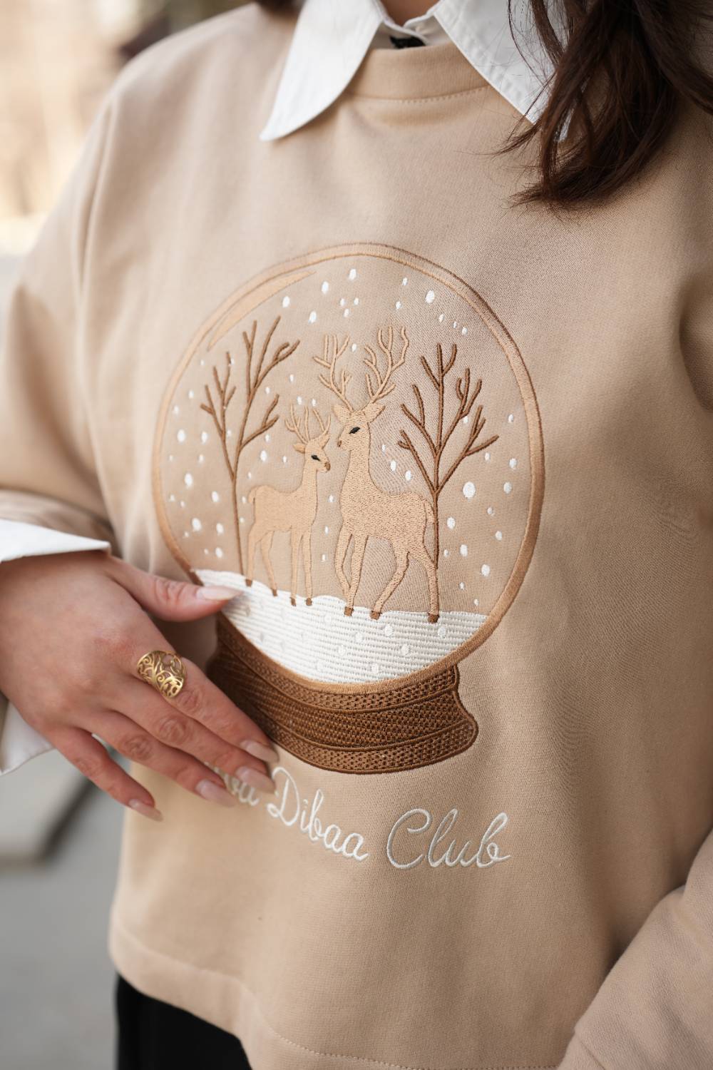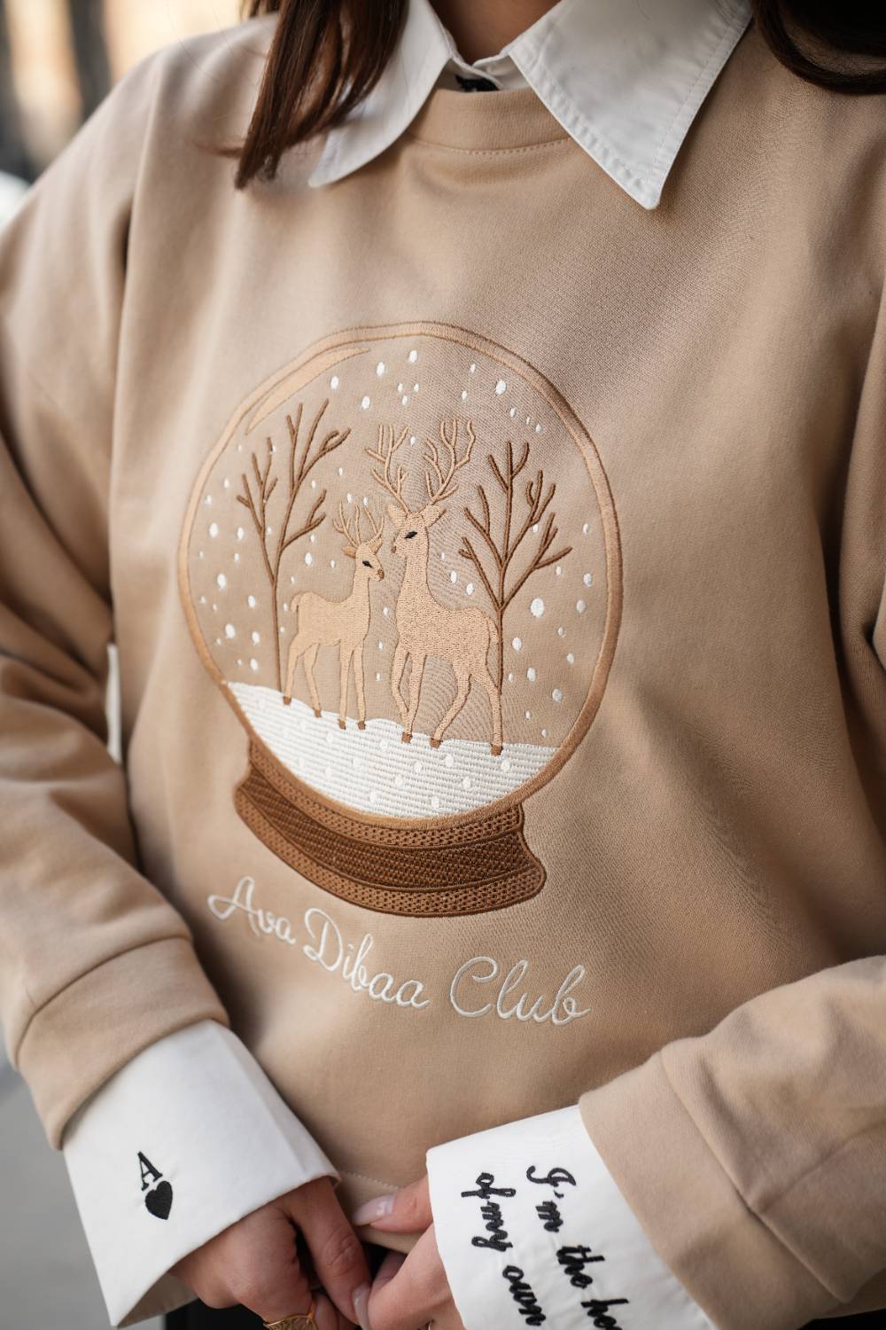 • تماما طرح روی سینه گلدوزی شده است